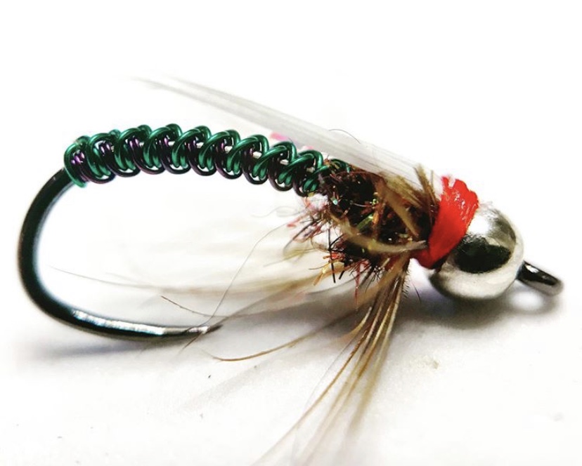 As much as he celebrates the traditions of fly tying, Justin is an innovator. His Houdini weave has its origins in the “Christmas fly” designed by James Payne, “a simple red and green ‘polish’ woven fly.” How did the Houdini come about? “My Dad wanted me to tie him some Christmas flies,” Justin recounts, “and at the time I had no idea that ‘weaving’ was even a thing, and I certainly didn’t know there were tutorials on the Internet. So I sat and looked at the fly and tried to reason out how it was done. I knew that it had two wires that looked braided together and one color stayed on top and one color stayed on bottom. It finally hit me how I thought it was done, and I sat down at the vise. When I finished, I saw that I had definitely done something, but it wasn’t the same as a polish weave. I had no idea that I had actually created something new. I am sure I am biased,” he laughs, “but I think the pattern is so beautiful and versatile. It has been so cool to see other tyers take it and create some awesome flies.”